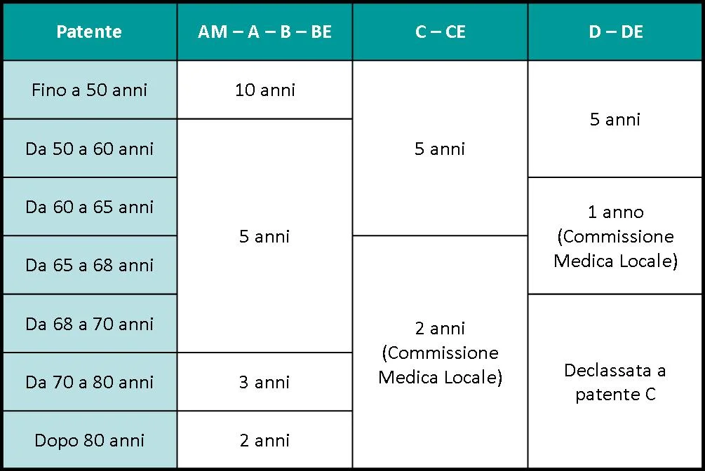 Chi possiede la patente di categoria "C" al compimento dei 65 anni deve sottoporsi a visita medica presso la Commissione Medica Locale. Se la patente C non viene utilizzata, il titolare può richiedere la riclassificazione della patente declassandola a categoria inferiore.